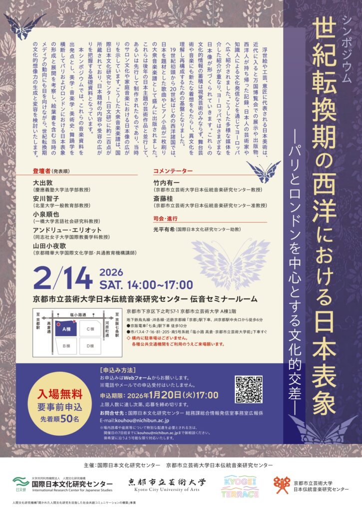 シンポジウム「世紀転換期の西洋における日本表象:パリとロンドンを中心とする文化的交差」(2026/2/14、京都市立芸術大学日本伝統音楽研究センター)